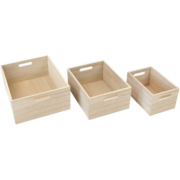 Wood Crates, Brown 15.75 in. x 5.75 in. Wood Decorative Baskets Set of 3, Wooden Bins for Storage and Organization, SML