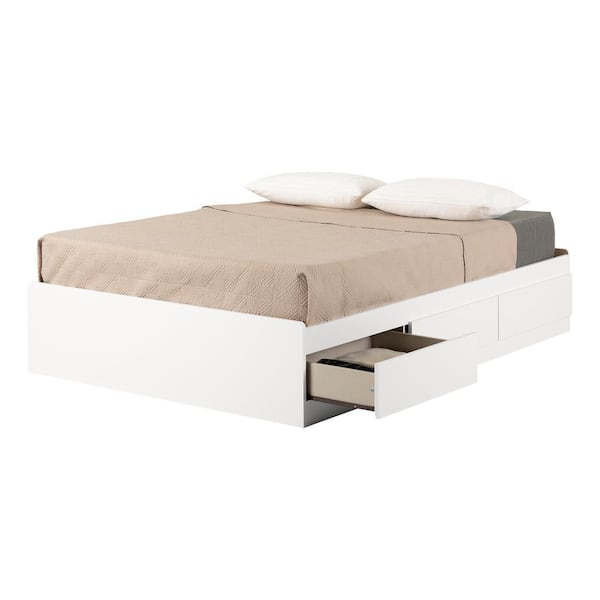 Fusion Pure White Full Size Bed 55.5 in. W with 3-Drawers