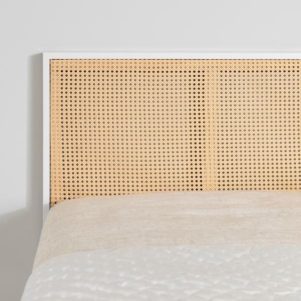 Hoya Metal Platform Bed with Natural Cane, White and Natural