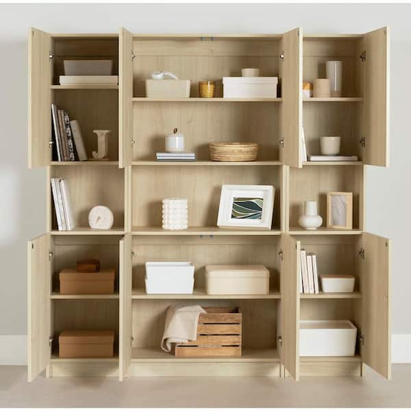 Liora Bleached Oak71. 5 in. Boockases with 18-Shelf Set of Bookcase