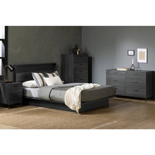 Musano Gray Oak Particle Board Frame Queen Platform Bed with Drawers