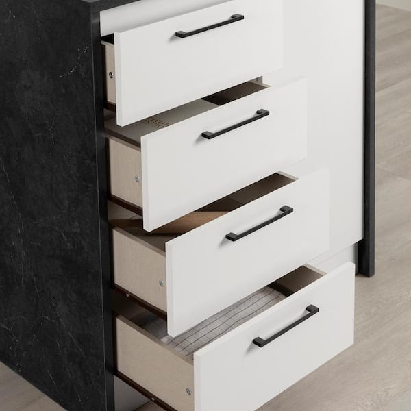 Myro Faux Black Stone and White Melamine 35.5 in. Kitchen Island