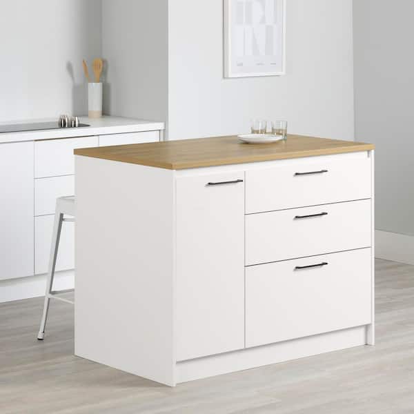 Myro White and Maple Nutmeg Melamine 46.75 in. Kitchen Island
