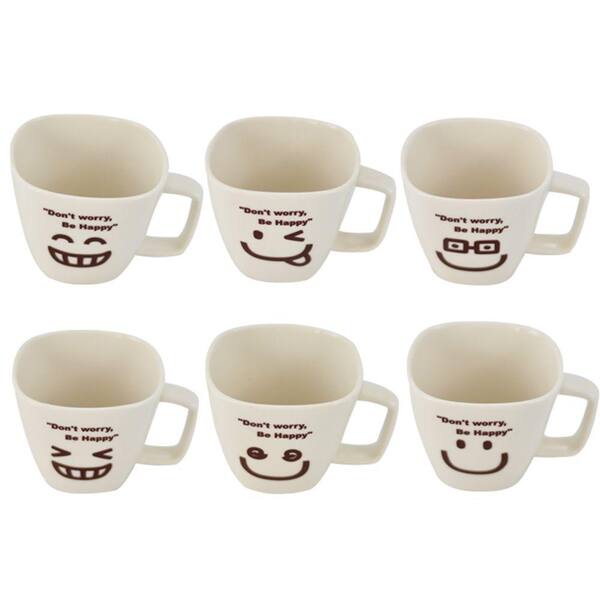Don't Worry Be Happy Ceramic Tea Cup Face (Set of 6)