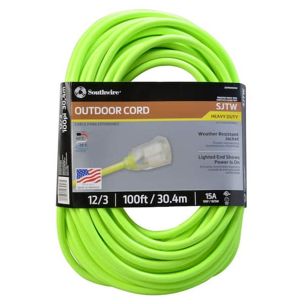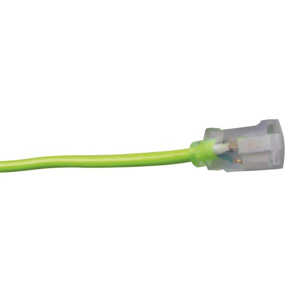 100 ft. 12/3 SJTW Outdoor Heavy-Duty Neon Green Extension Cord with Power Light Plug