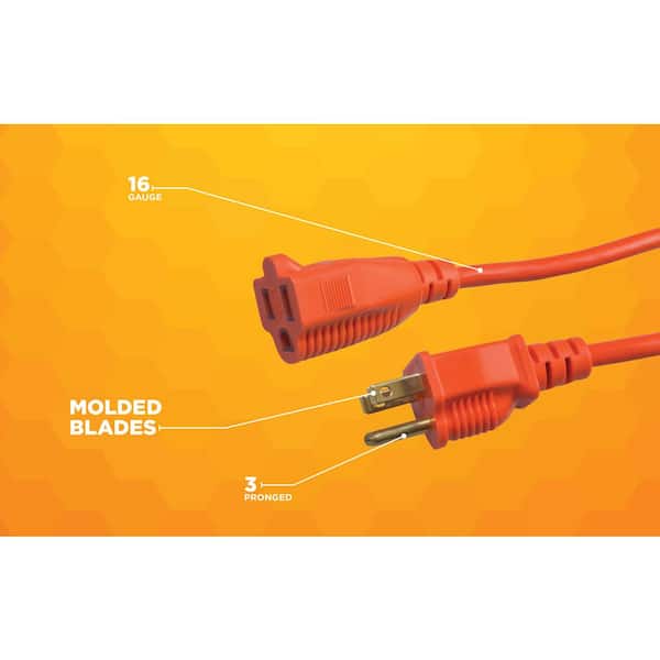 25 ft. 16/2 SJTW Outdoor Light-Duty Extension Cord, Orange