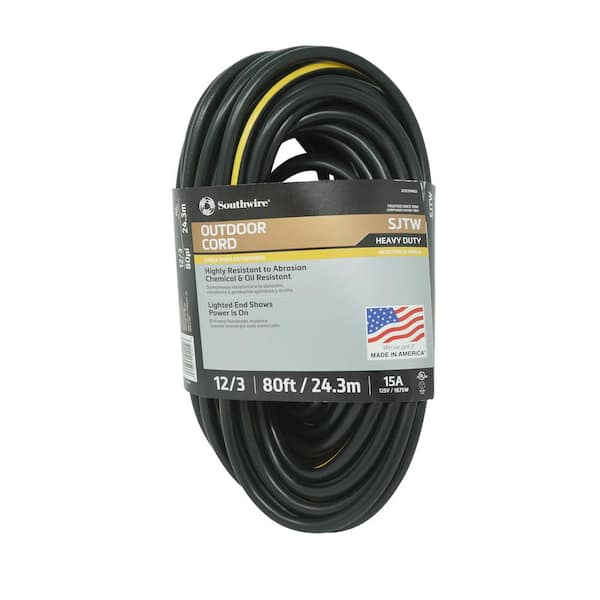80 ft. 12/3 SJTW Outdoor Heavy-Duty Extension Cord with Power Light Plug, Black/Yellow