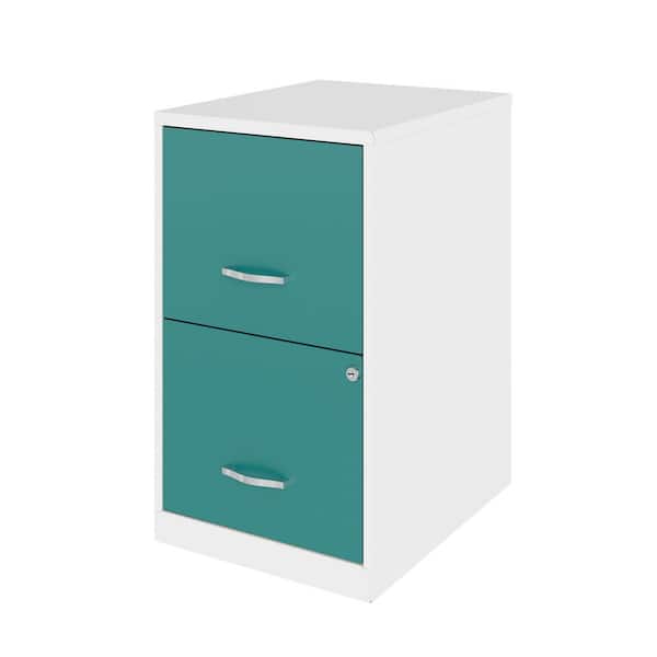 18 in. D 2-Drawer Metal Letter Width 14.25 in. W Vertical File Cabinet, Pearl White/Teal