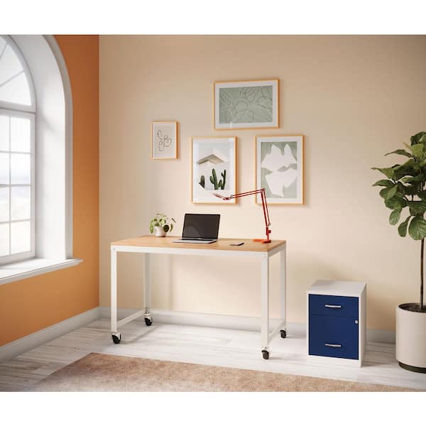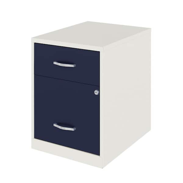 18 in. D 2-Drawer Metal Letter Width 14.25 in. W Vertical File Cabinet w/ Accessory Drawer, Pearl White/Navy
