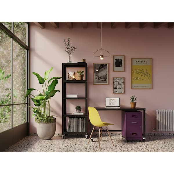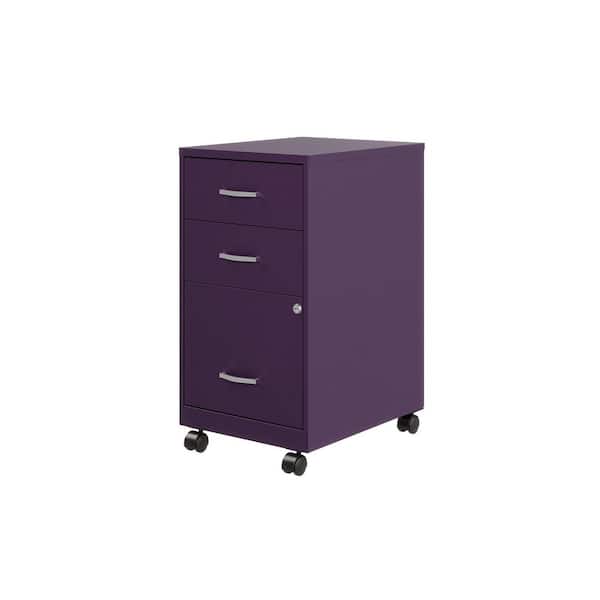 18 in. D 3-Drawer Metal Letter Width 14.25 in. W Mobile Vertical File Cabinet Box-Box-File, Midnight Purple