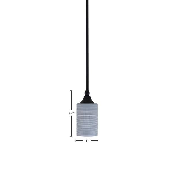 Sparta 1-Light Matte Black Stem Mini Pendant Light with Gray Matrix Glass Shade