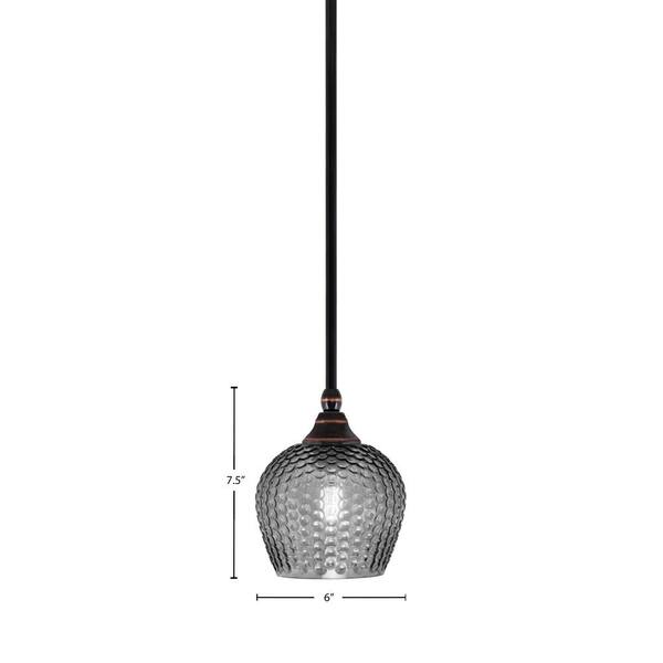 Sparta 100-Watt 1-Light Black Copper Mini Pendant Light with Smoke Textured Glass and Light Bulb Not Included