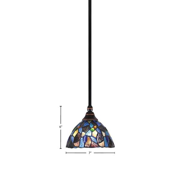 Sparta 100-Watt 1 Light Black Copper Shaded Pendant, Mini Pendant Light with Blue Mosaic Art Shade No Bulb Included