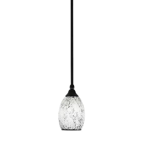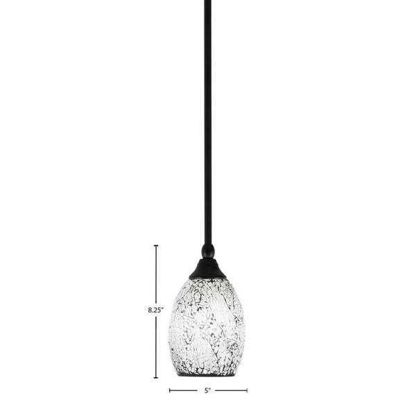 Sparta 100-Watt 1-Light Matte Black Shaded Pendant Light Mini Pendant with 5 in. Black Fusion Glass No Bulb Included
