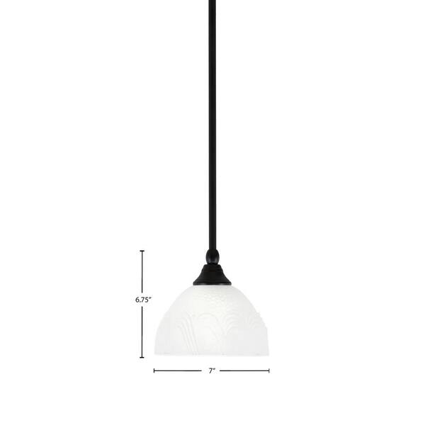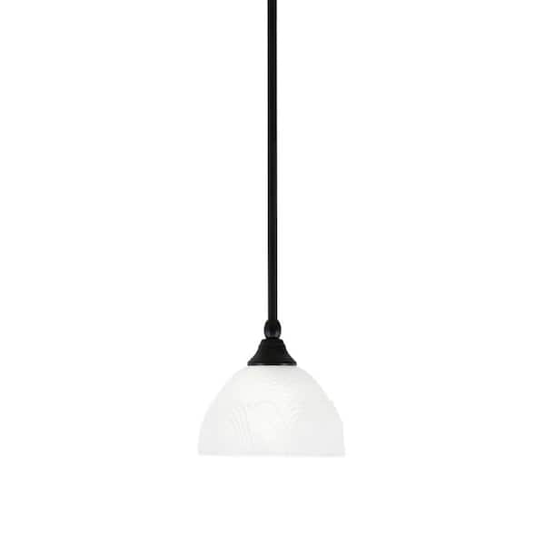 Sparta 100-Watt 1-Light Matte Black Shaded Pendant Light Mini Pendant with 7 in. White Swirl Glass, No Bulb Included
