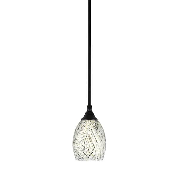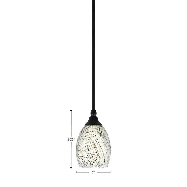 Sparta 100-Watt 1-Light Matte Black Shaded Pendant Light Mini Pendant with Natural Fusion Glass, No Bulb included