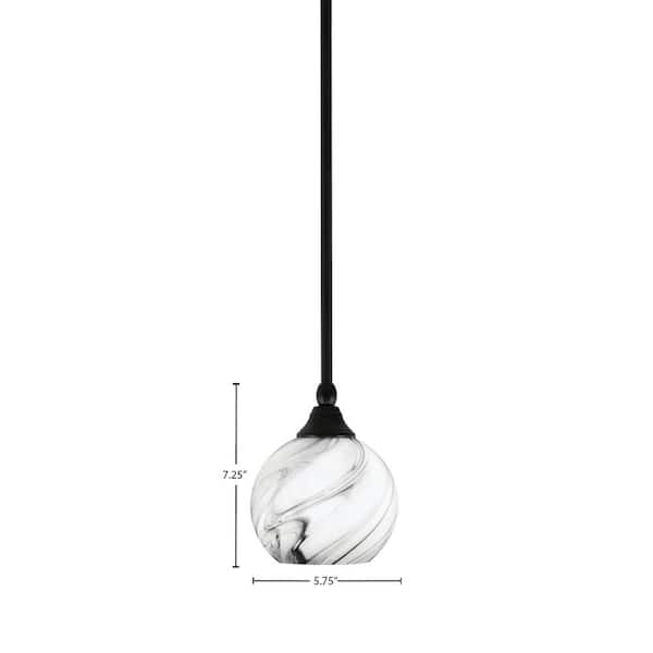 Sparta 100-Watt 1-Light Matte Black Shaded Pendant Light Mini Pendant with Onyx Swirl Glass, No Bulb included