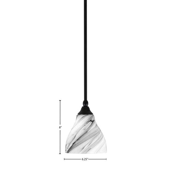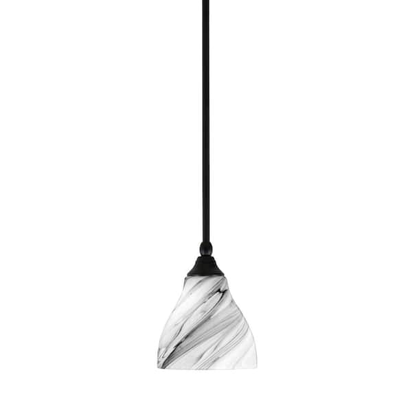 Sparta 100-Watt 1-Light Matte Black Shaded Pendant Light Mini Pendant with Onyx Swirl Glass, No Bulb included