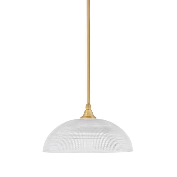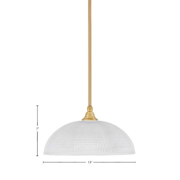Sparta 100-Watt 1-Light New Age Brass Shaded Pendant Light Mini Pendant with Clear Ribbed Glass and No Blulb Included