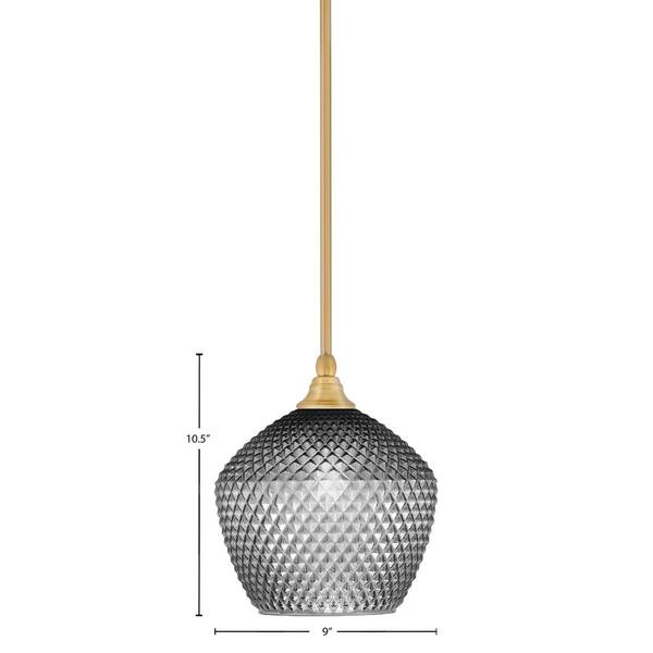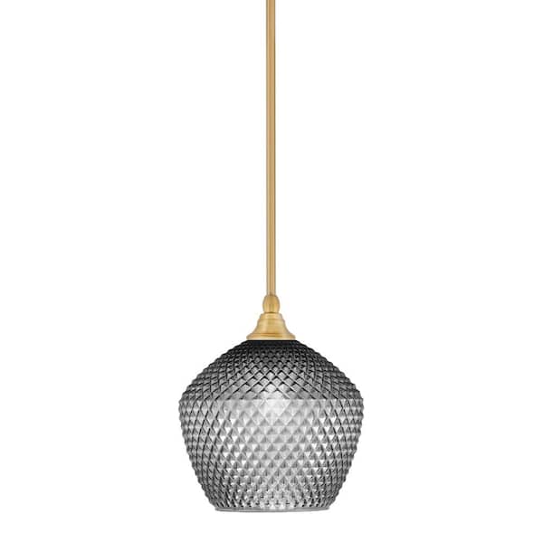Sparta 100-Watt 1-Light New Age Brass Shaded Pendant Light Mini Pendant with Smoke Textured Glass and No Bulb Included