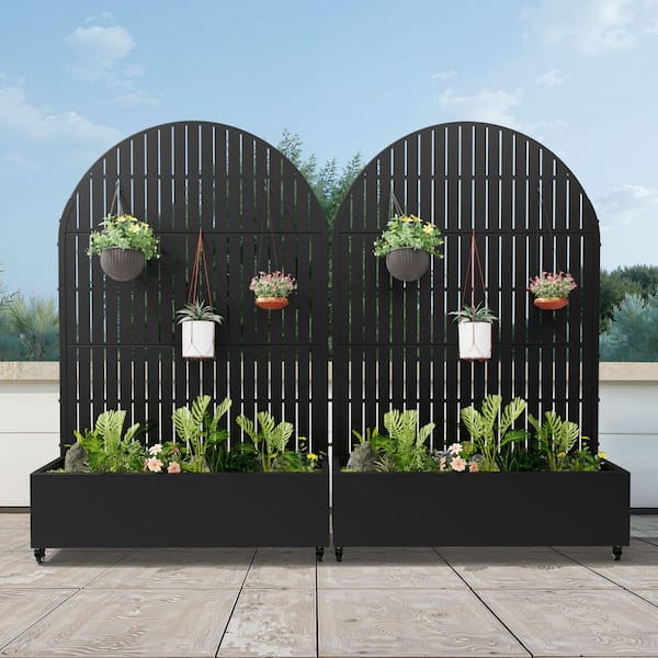 2PK Arch Metal Planter Box with Trellis with Wheels Black