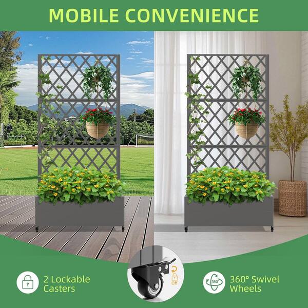 6 ft. H x 3 ft. W Metal Planter Box with Trellis Gray