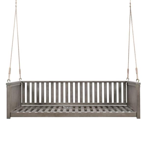79"L x 41"W, 350 lbs Capacity, Gray Acacia Wood with Hemp Ropes, Porch Swing, for Garden or Backyard, No Cushion.