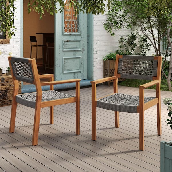 Set of 2 Braided Dining Chairs, natural rope seats, 400 lbs. Capacity, for Indoor and Outdoor Use