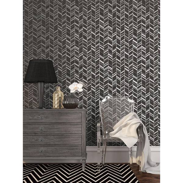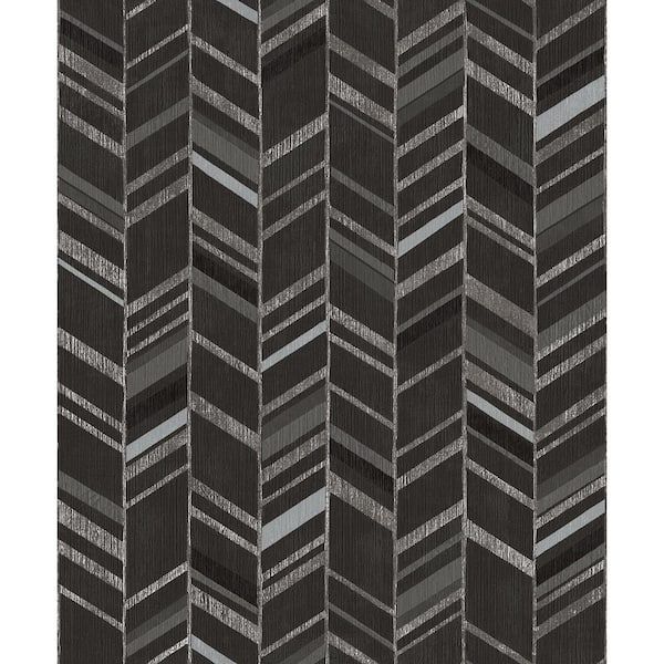 Special FX 2 Collection Black Glitter Chevron Design Vinyl on Non-Woven Non-Pasted Wallpaper Sample