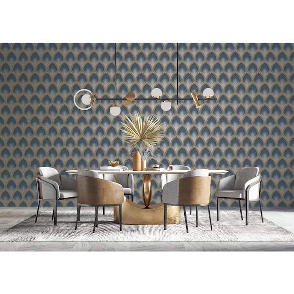 Special FX 2 Collection Navy Nouveau Scallop Metallic Finish Vinyl on Non-Woven Non-Pasted Wallpaper Roll