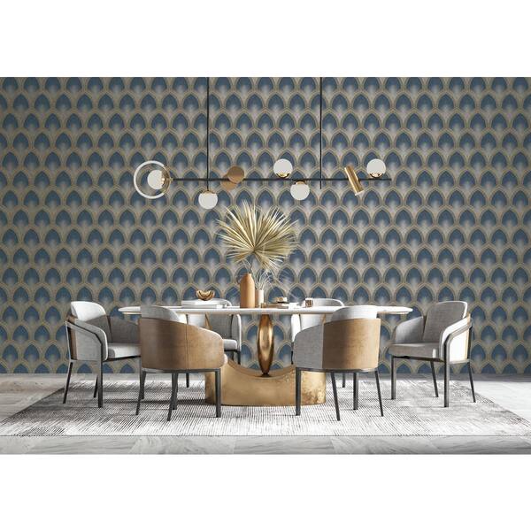 Special FX 2 Collection Navy Nouveau Scallop Metallic Finish Vinyl on Non-Woven Non-Pasted Wallpaper Sample