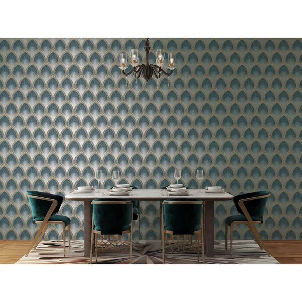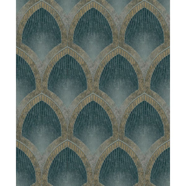 Special FX 2 Collection Turquoise Nouveau Scallop Metallic Finish Vinyl on Non-Woven Non-Pasted Wallpaper Sample