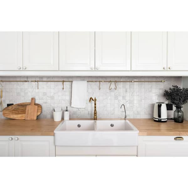 Snowdrop White and Gray 11.73 in. x 11.73 in. x 5mm Marble Peel and Stick Wall Mosaic Tile (5.74 sq. ft./Case)