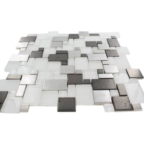 Tetris Steel Ice Parisian Pattern 12 in. x 12 in. x 8 mm Mosaic Floor and Wall Tile