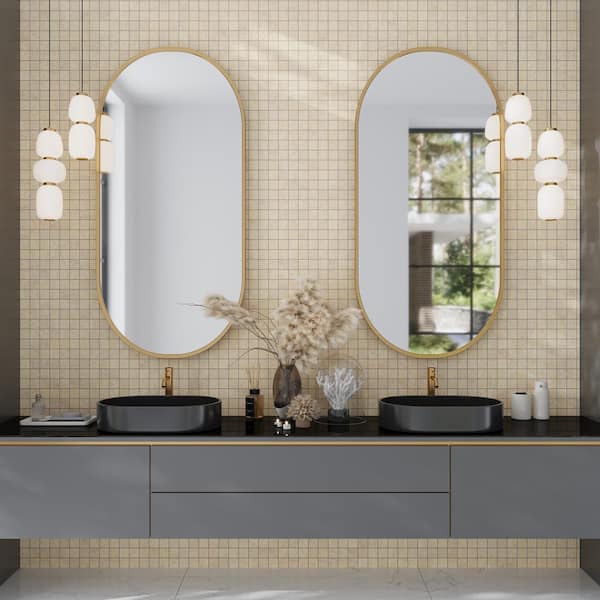 Splendor 4 in. x 0.41 in. Polished Beige Porcelain Mosaic Wall and Floor Sample Tile (0.14 sq. ft./case) (1-pack)