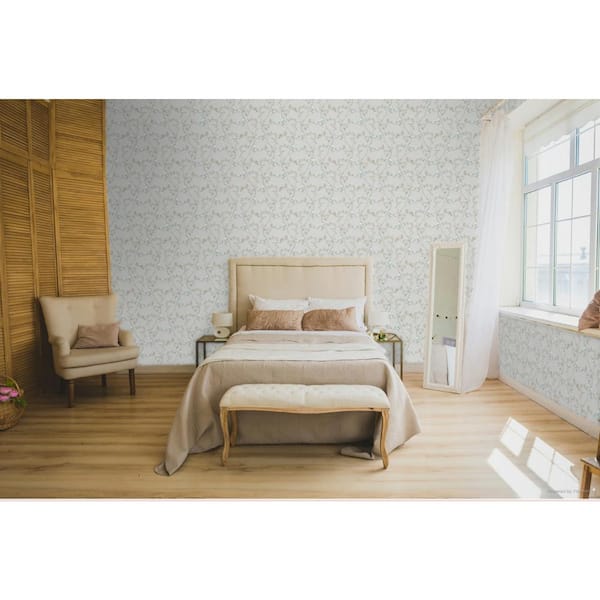 Spring Blossom Collection Chinoiserie Floral Vine Cream Matte Finish Non-Pasted Non-Woven Paper Wallpaper Roll