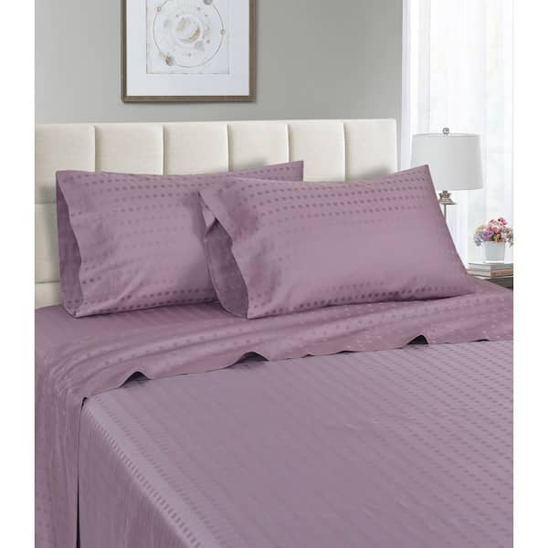 Spring Home 4 Piece 1200 Thread Count Purple Jacquard Dot 100% Cotton Full Size Deep Pocket Sheet Set