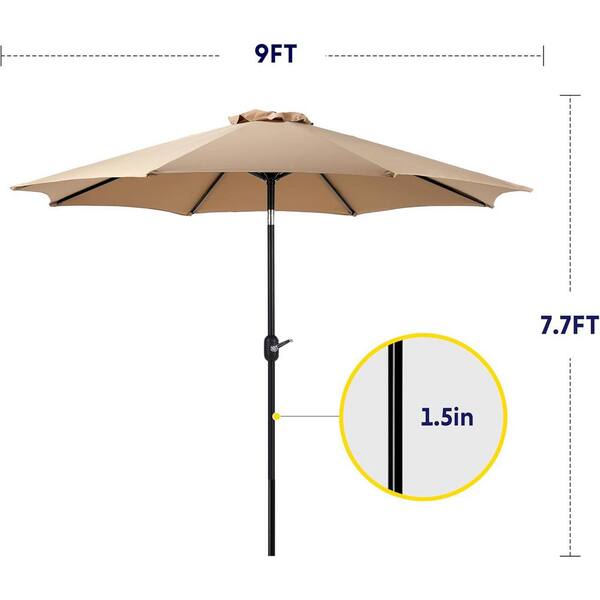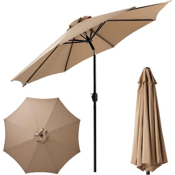 Spring Hot Sale 9 ft. Stainless Steel Market Patio Umbrella in Khaki with 8 Ribs, Push Button Tilt/Crank