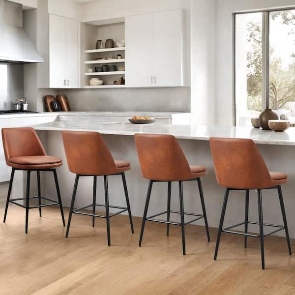 Cecily 27 in. Reddish Brown High Back Metal Swivel Counter Stool with Faux Leather Seat (Set of 2)