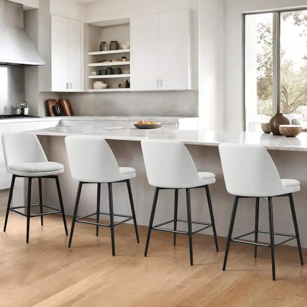 Cecily 27 in. White High Back Metal Swivel Counter Stool with Fabric Seat (Set of 2)