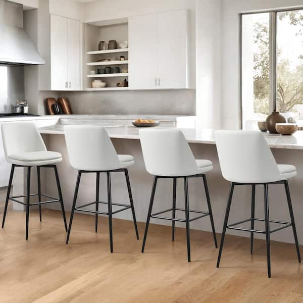 Cecily 30 in. White High Back Metal Swivel Bar Stool with Faux Leather Seat (Set of 2)
