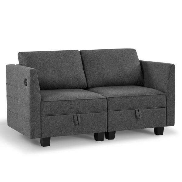 Dante 60 in. 2-Piece Square Arm Fabric Modular Sofa in. Gray with Storage Space, USB and Type-C Charging Port