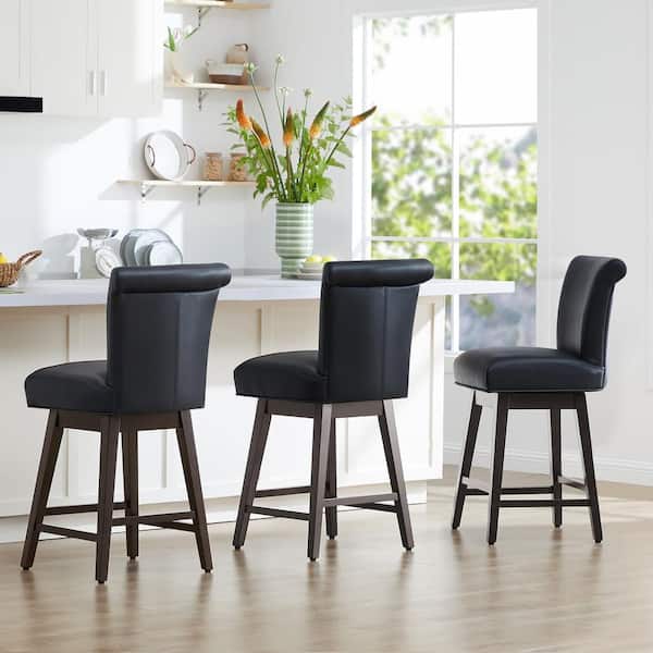 Dennis 26 in. Black High Back Solid Wood Frame Swivel Counter Height Bar Stool with Faux Leather Seat(Set of 2)