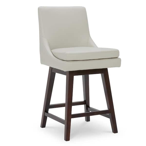 Fiona 26.8 in. Light Gray High Back Solid Wood Frame Swivel Counter Height Bar Stool with Faux Leather Seat