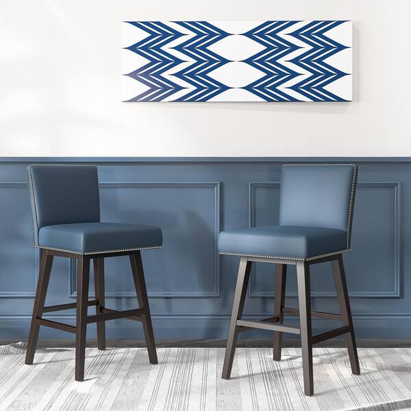 Frank 26 in. Ink Blue High Back Solid Wood Frame Swivel Counter Height Bar Stool with Faux Leather Seat
