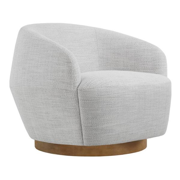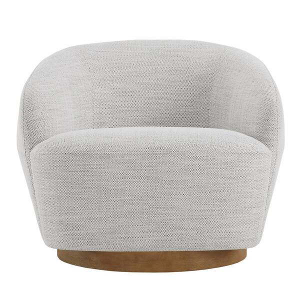 Henry Ivory Fabric Swivel Accent Chair with Wood Base Round Barrel Armchair for Living Room or Bedroom