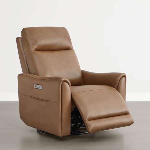 Iris Saddle Genuine Leather Swivel Glider Power Recliner with Side Pocket, USB and Type-C Charging Port, Memory Foam