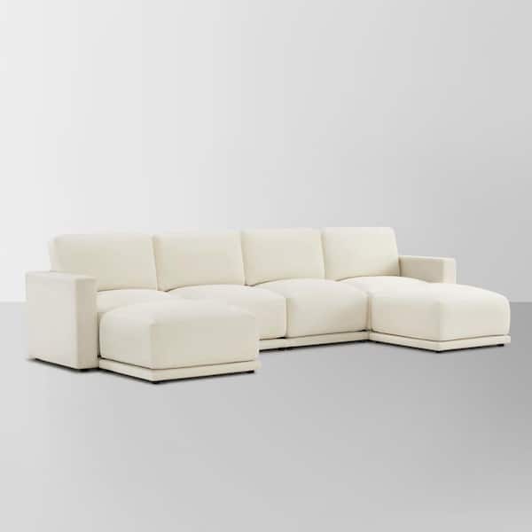Juno 149.6 in. 6-Piece Fabric Upholstered Modular Sectional Sofa in Cream-6PCU with 2 Ottomans for Living Room