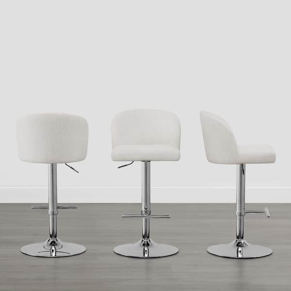 Levi Cream/Silver Gas Lift Adjustable Swivel Counter Stool with Upholstered Backrest for Kitchen or Home Bar (Set of 3)