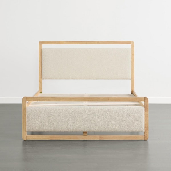 Liam Brown Wood Frame Queen Platform Bed Frame with USB Charging Port, Upholstered Headboard 16 Wooden Slats for Bedroom